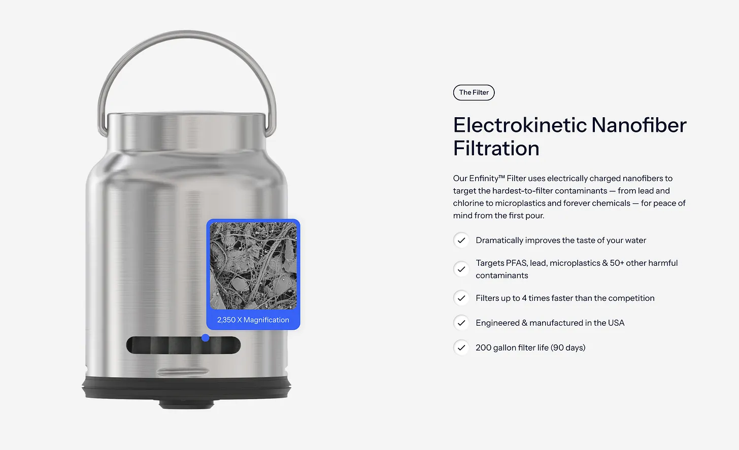 One of Rorra’s standout features is its sleek, medical-grade stainless steel design, which minimizes plastic use while adding a touch of elegance to any kitchen. The performance indicator system keeps you informed about when to refill the reservoir or replace the filter, taking the guesswork out of maintenance. With a filter life of 200 gallons and filtration speeds up to four times faster than competitors, Rorra is efficient and long-lasting.