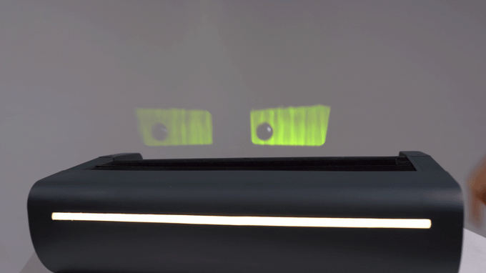 Holographic display – Uses laser projection to create a floating 3D avatar.